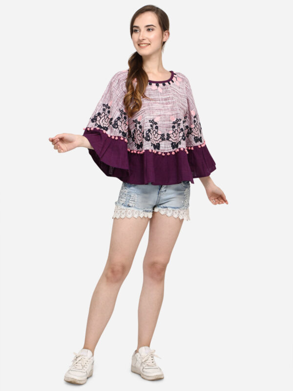 Purple Frill Slub Khadi Poncho