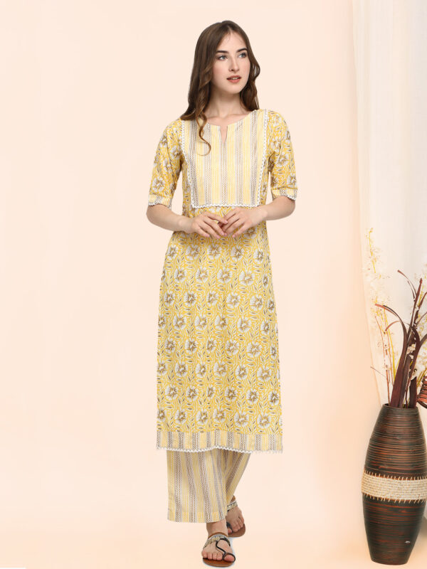Yellow Poppin Flower Foil Printed Kurta Set