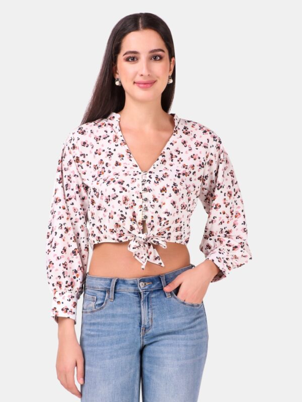 Off White Animal Printed Front Tieup Top
