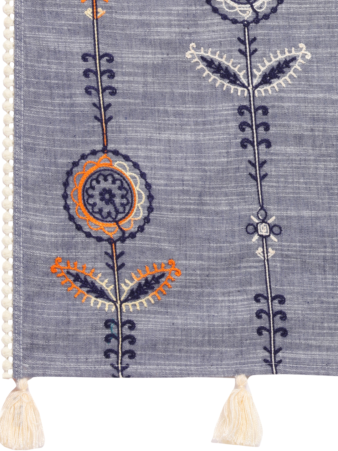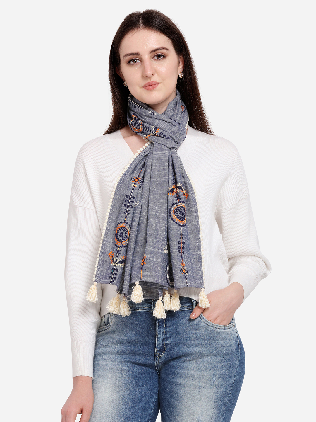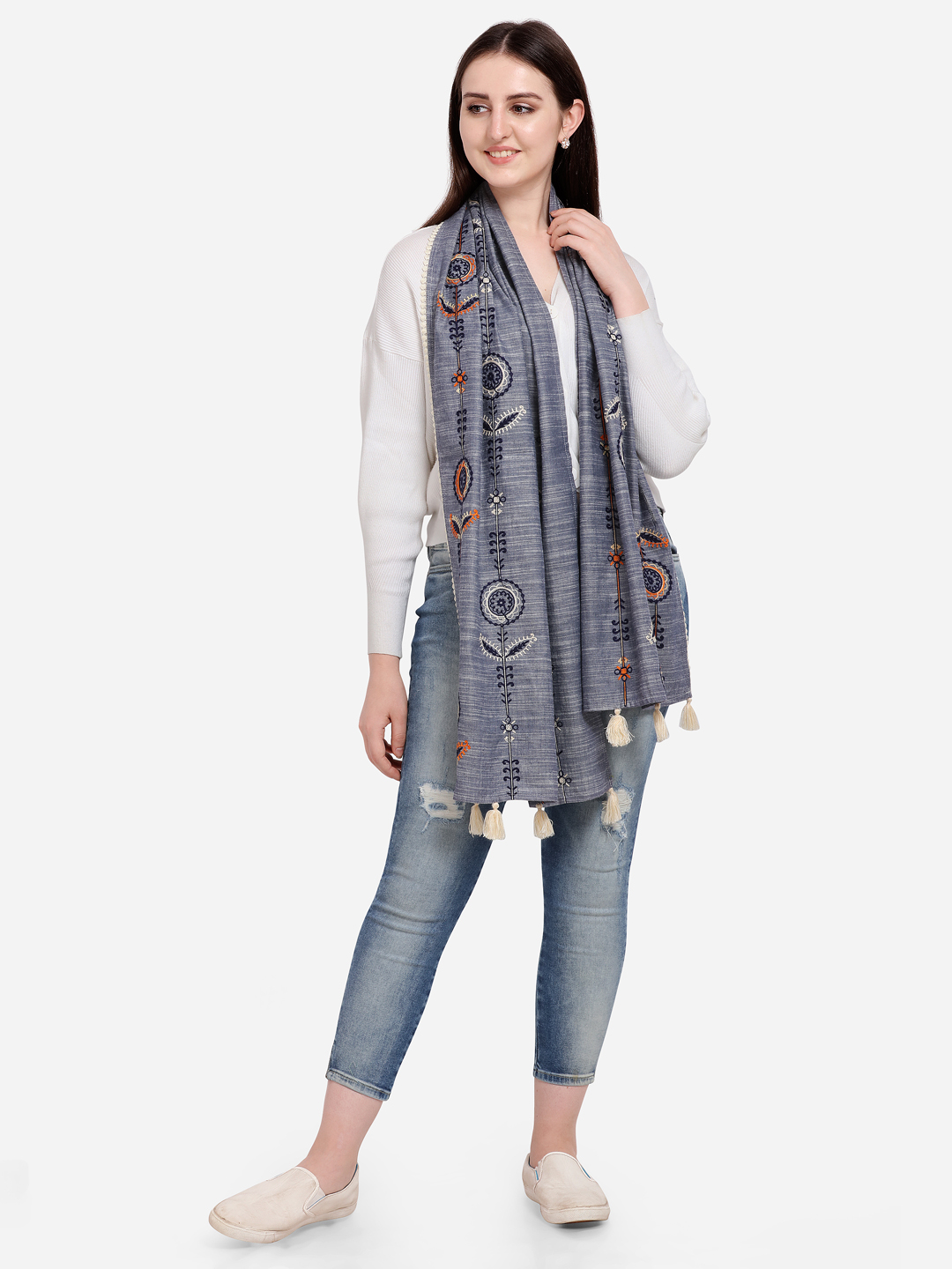 Charmed Cement Indigo Khadi Embrodiered Stole/Scarf