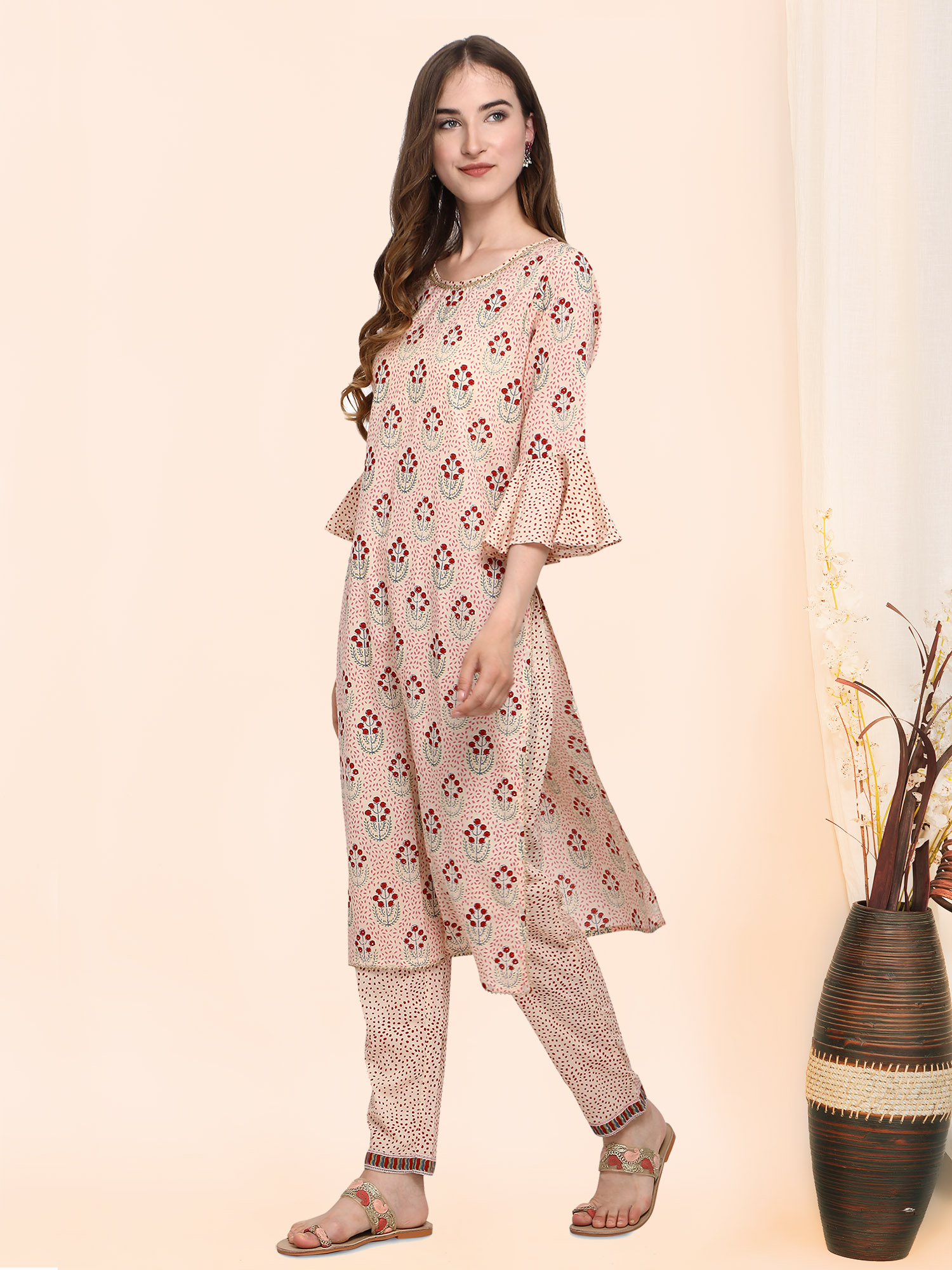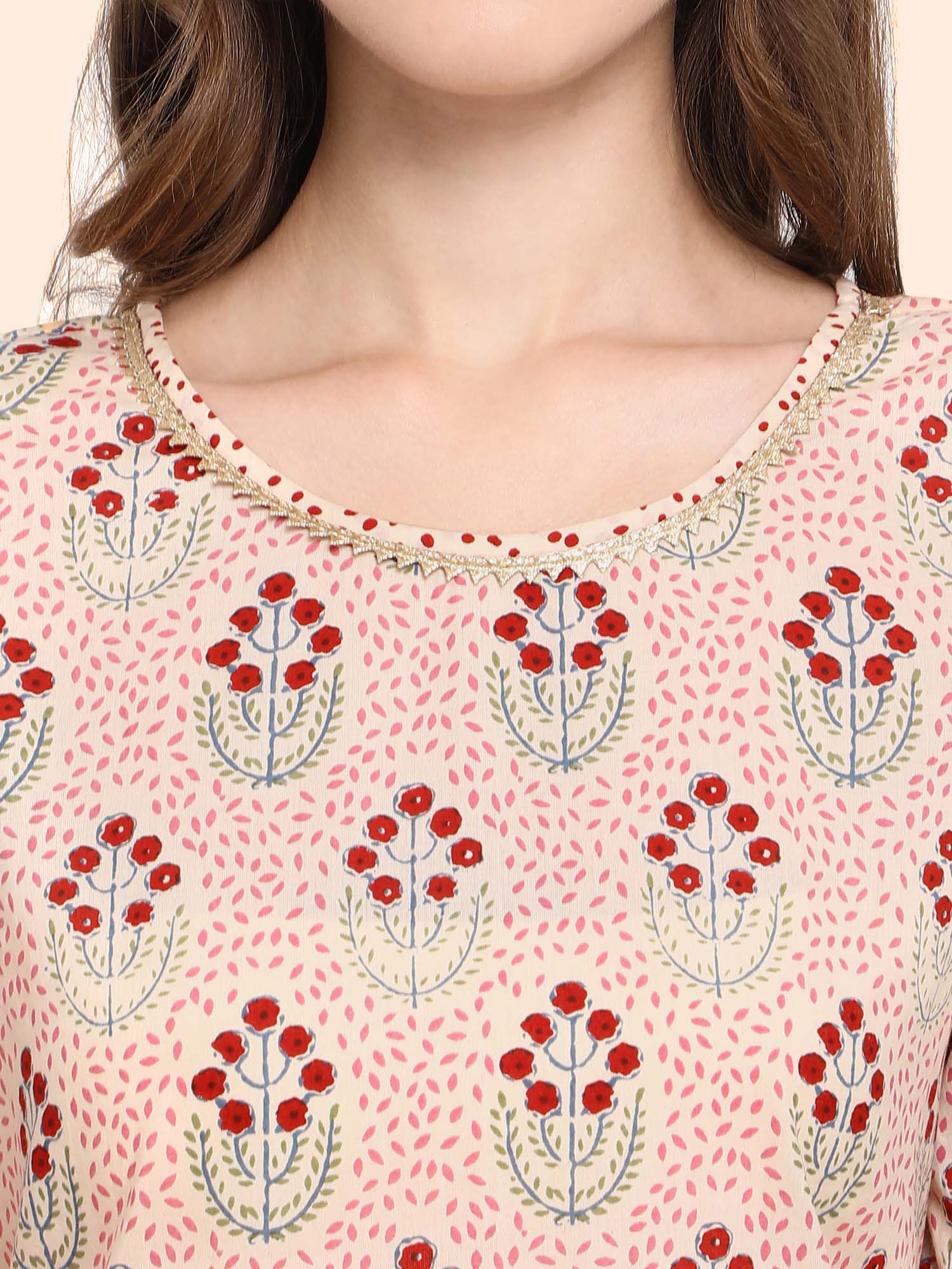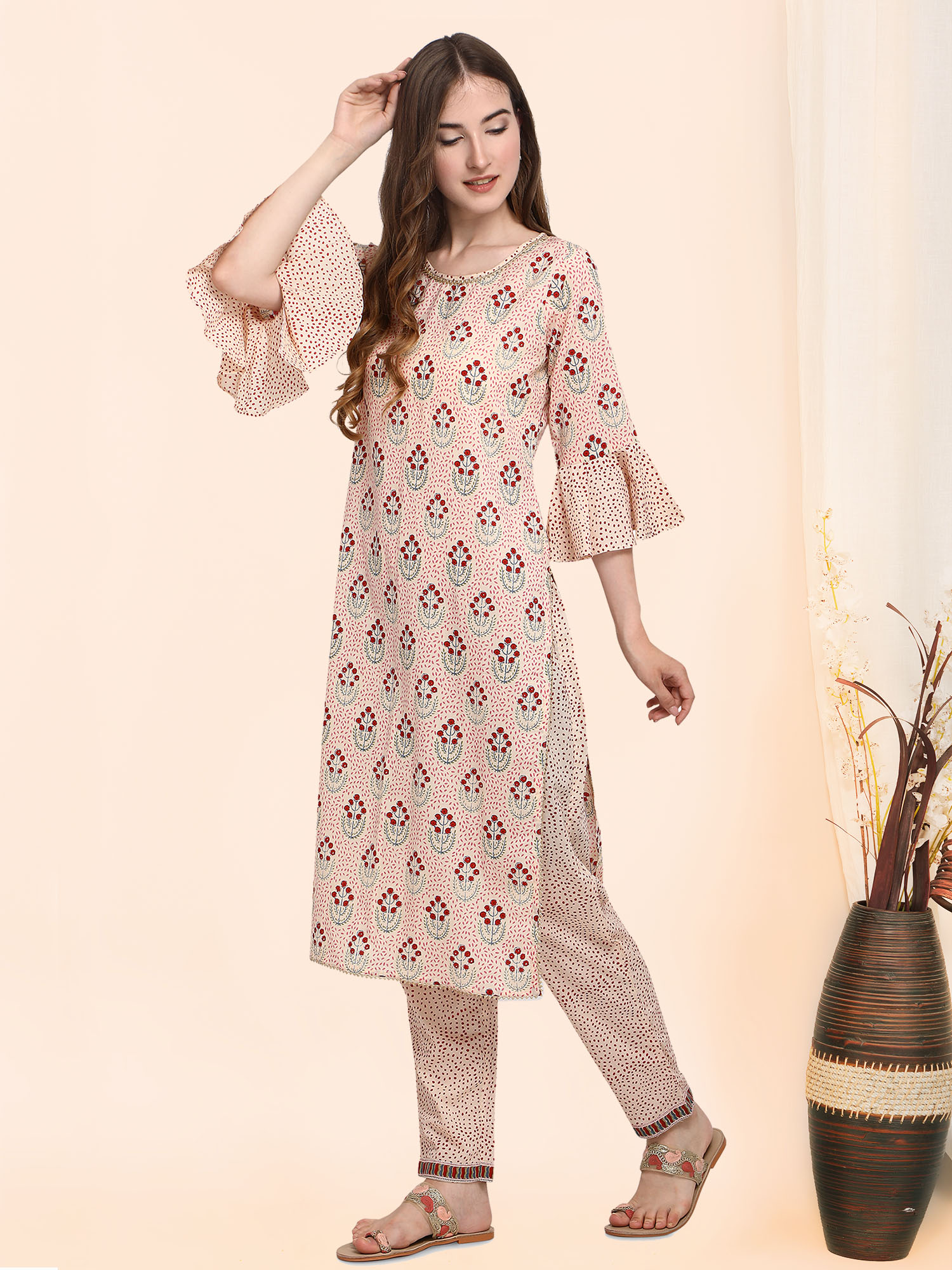 Classic Beige Handblock Cotton Printed Kurta set