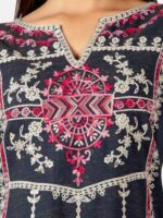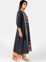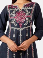 Deep Navyblue Heavy Panel Embroidered Slub Khadi Kurta set