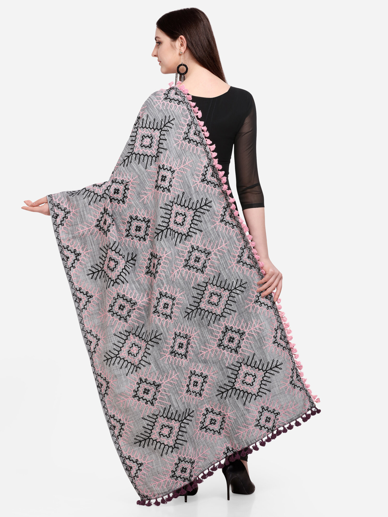 Be the first to review “Grey Tribal Aari Embrodiered Slub Khadi Shawl/Dupatta With Baby Pink Cotton Lace” Cancel reply