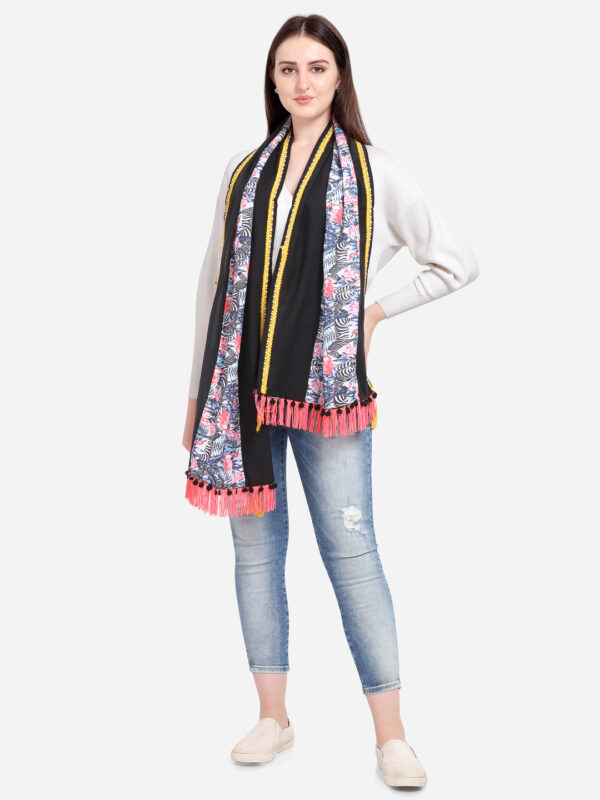 Navy Blue Marigold Khadi Embroidered Stole/Scarf