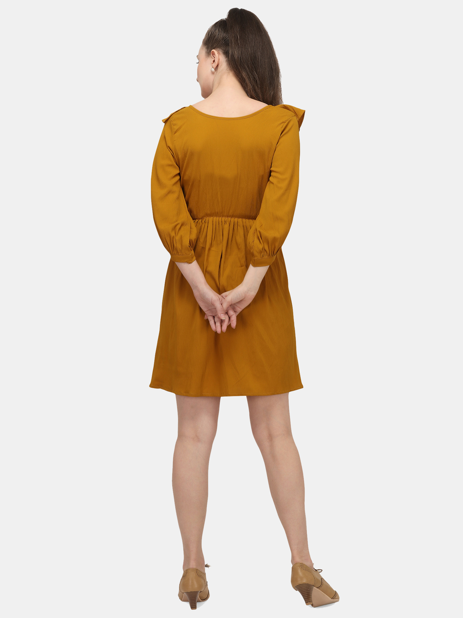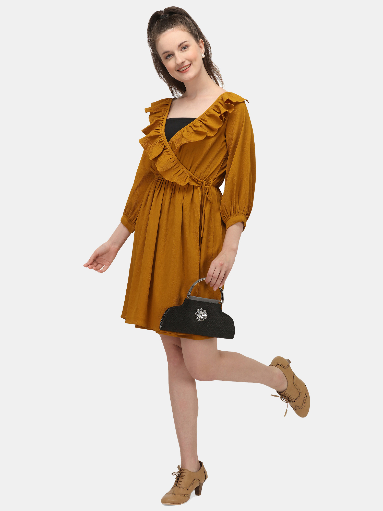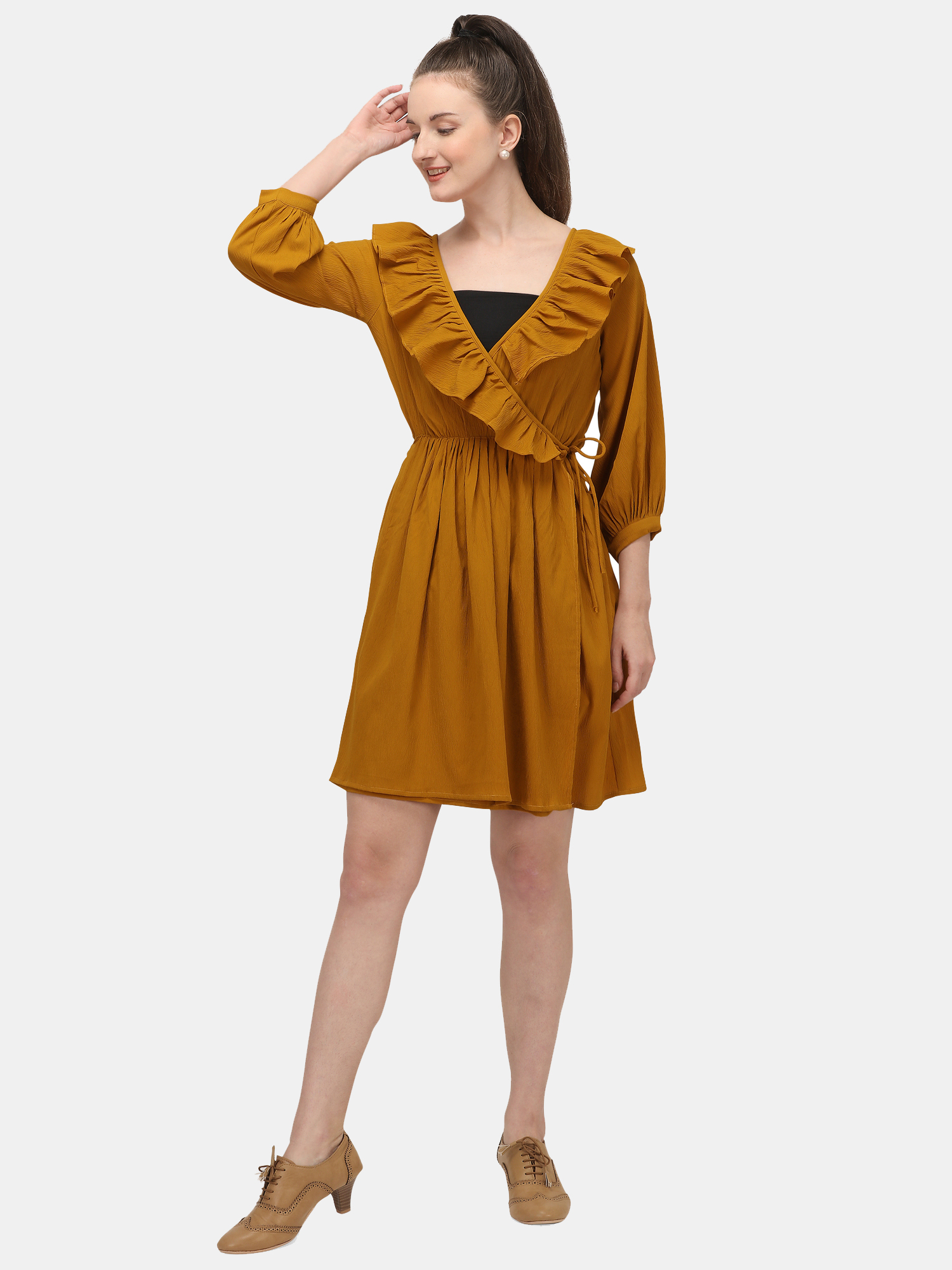 MUSTURD RUFFLE SHORT KNEE LENGTH DRESS