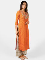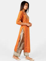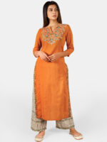 Be the first to review “Orange long embroidered neck kurta with rust canvas palazzo pant” Cancel reply