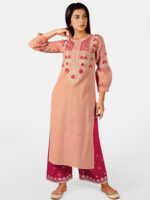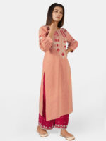 Be the first to review “Peach long princess line long kurta with embroidered palazzo pant” Cancel reply