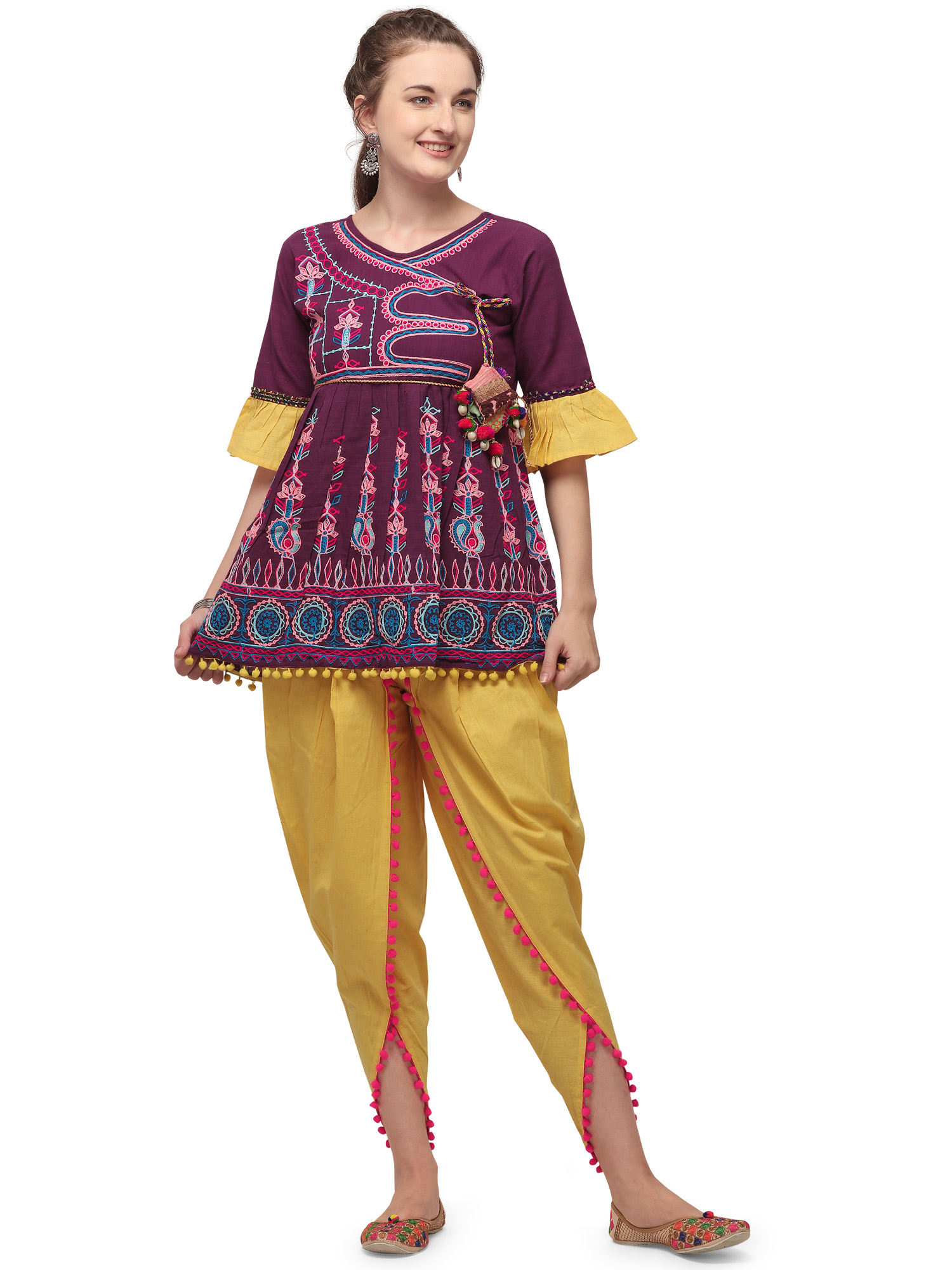 Be the first to review “Purple foke motif fully embroidered kedia with lemon yellow tulip pant” Cancel reply