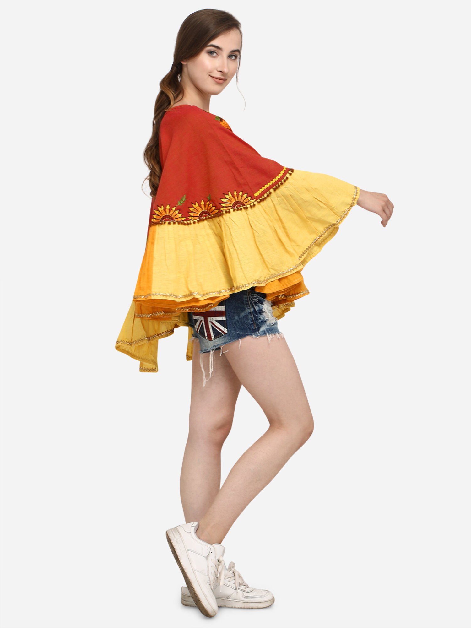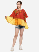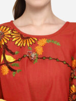 Rust Sunflower Embroidery Assymetric poncho