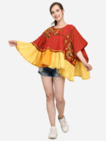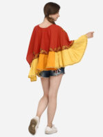 Now Forget your regular sweaters and try MESMORA’S unique RANGEELA RE colourful embroidered ponchos?Minute woollen and jute embroidery, both front and back decorated by Dazzling laces and *3D flowers.100% khadi that keeps you warm in winters and cool in summers.?Wear it on your regular top as winter poncho, on a gown as a style element, and marry-go-round.?28″ long? circular ponchos with front and back embroidery? and fits up to 46″ chest size?