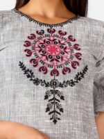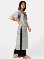 Be the first to review “Silver slub embroidered neck kurta with black plazzo pant” Cancel reply