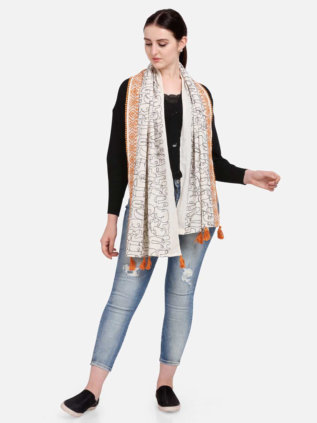 embelished with hand made tassels tucked on both the sides. The stole is perfect for your casual outfit. it can be wore in any seasons this makes it multi purpose stole for every season.