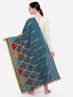 Turqoise Blue Multi colour Asri heavily Embroidered Khadi Shawl/Dupatta With Yellow Tassel Lace