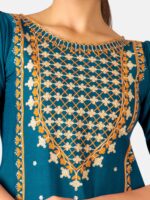 Turquoise Heavy-Neck and Twinkiling Star Embroidered Khadi Kurta Set