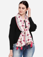 Twinkling Pink Floral off-White Khadi Embroiderd Stole